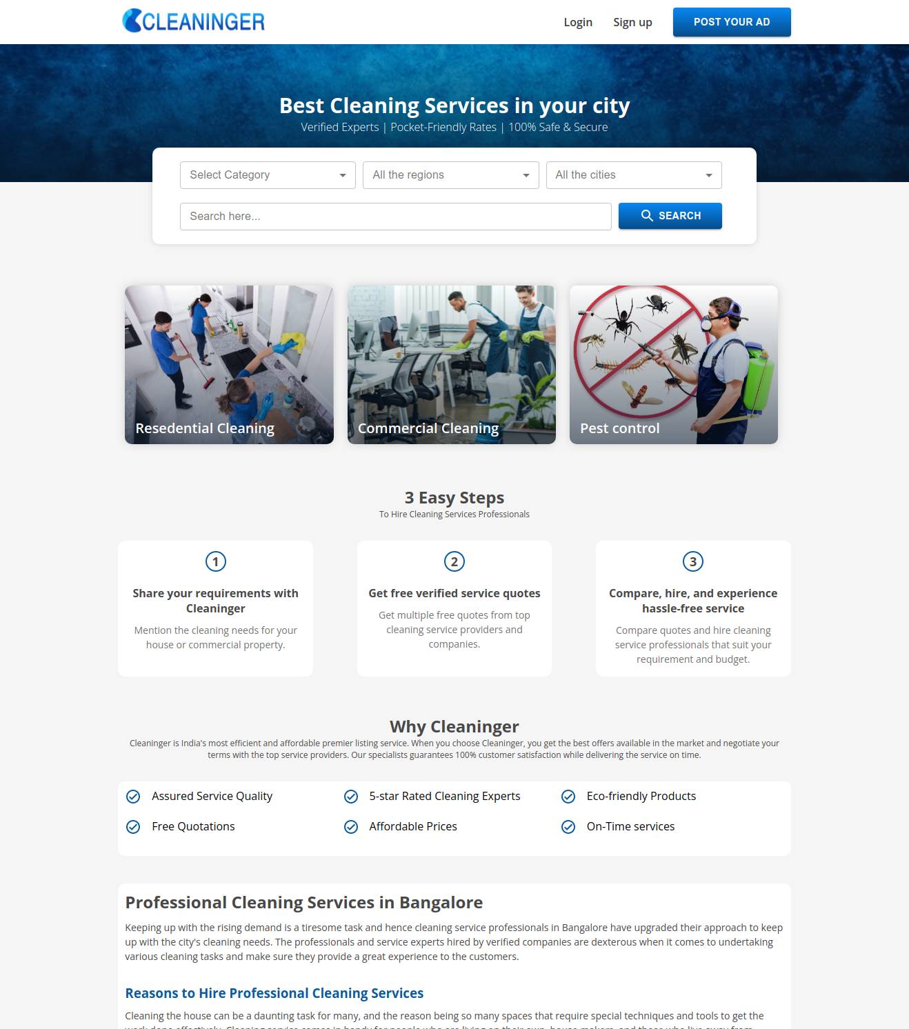 Cleaninger is India's most efficient and affordable premier listing service. When you choose Cleaninger, you get the best offers available in the market and negotiate your terms with the top service providers